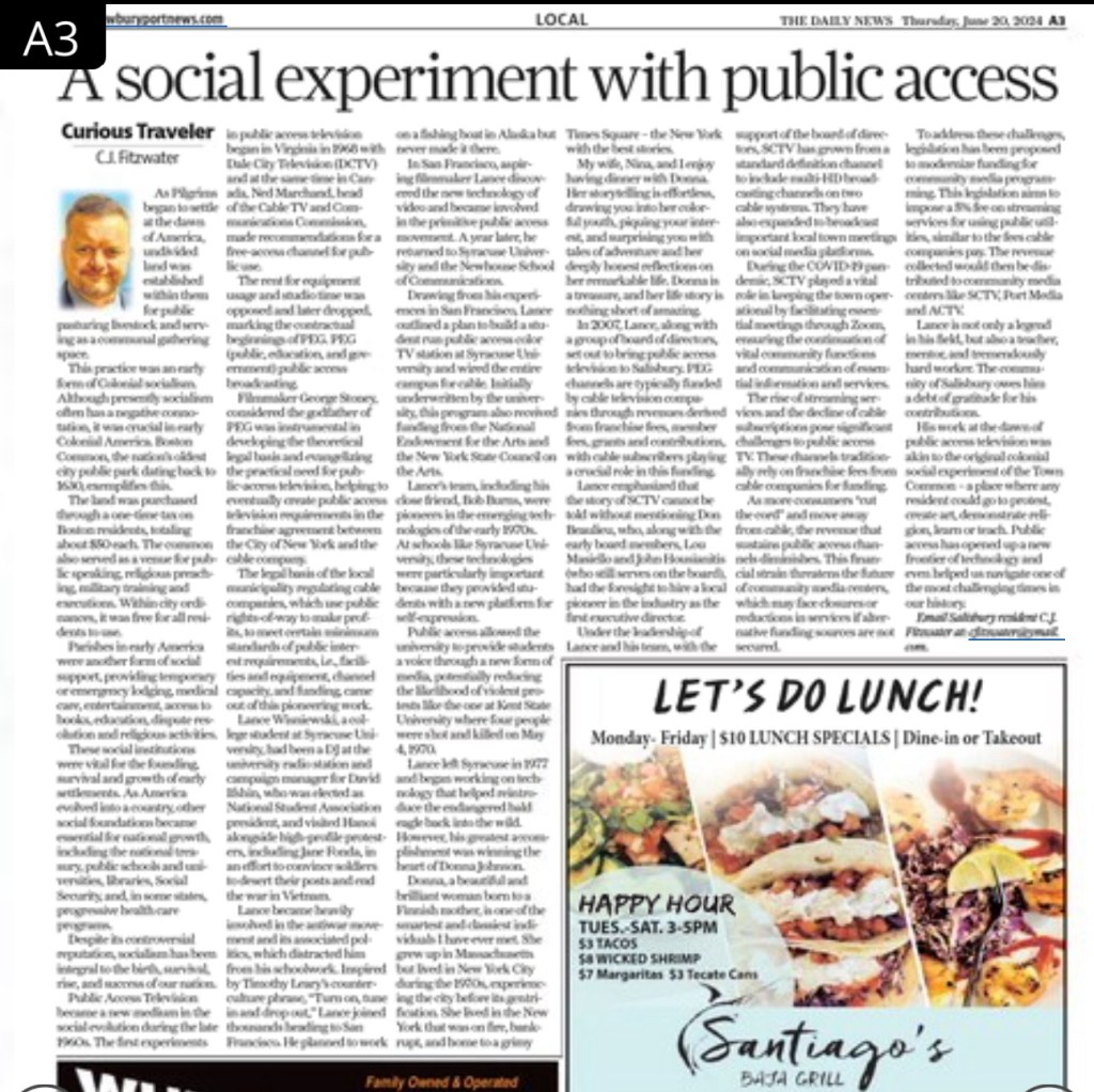 Under the leadership of Lance and his team, with the support of the board of directors, SCTV has grown from a standard definition channel to include multi-HD broadcasting channels on two cable systems. They have also expanded to broadcast important local town meetings on social media platforms.