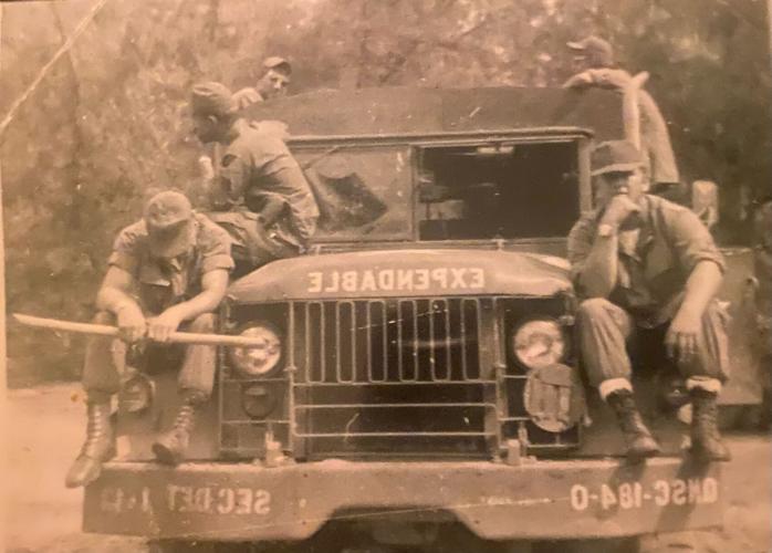 Among these memories, one image always captured my attention: it showed five soldiers aboard a military truck, a stark “EXPENDABLE” label imprinted backward on the hood of the deuce and a half. Their eyes diverted in every direction but ahead, bound together by the cruel inscription that seemed to include them as mere cargo.