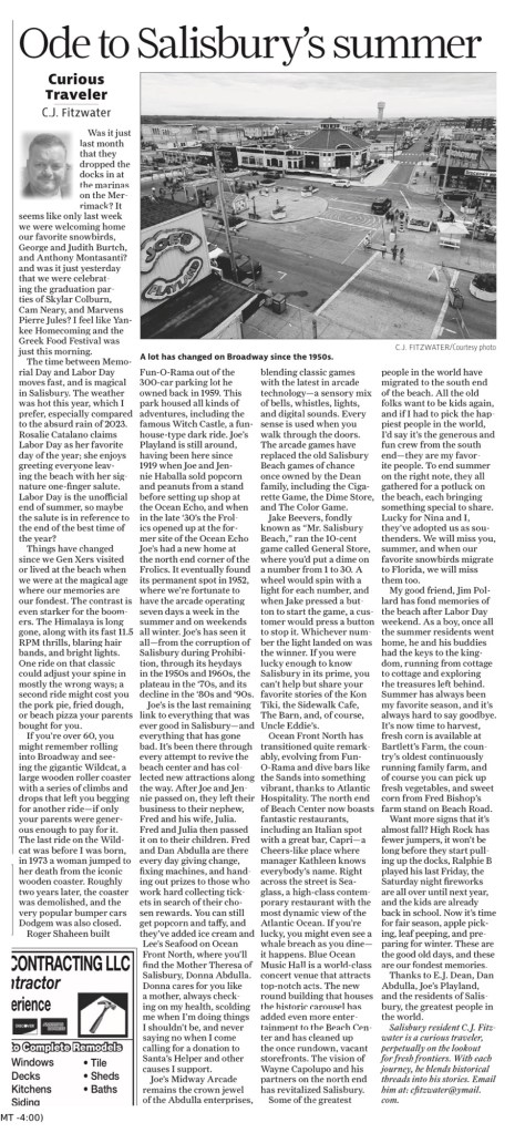 The time between Memorial Day and Labor Day moves fast, and is magical in Salisbury. The weather was hot this year, which I prefer, especially compared to the absurd rain of 2023. Rosalie Catalano claims Labor Day as her favorite day of the year; she enjoys greeting everyone leaving the beach with her signature one-finger salute. Labor Day is the unofficial end of summer, so maybe the salute is in reference to the end of the best time of the year?